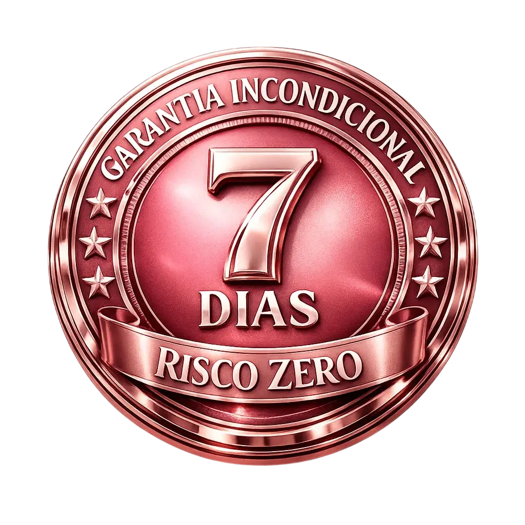 Se em qualquer momento durante os primeiros 7 dias você sentir que o método é complicado demais para implementar, devolvemos 100% do seu investimento sem questionamentos.